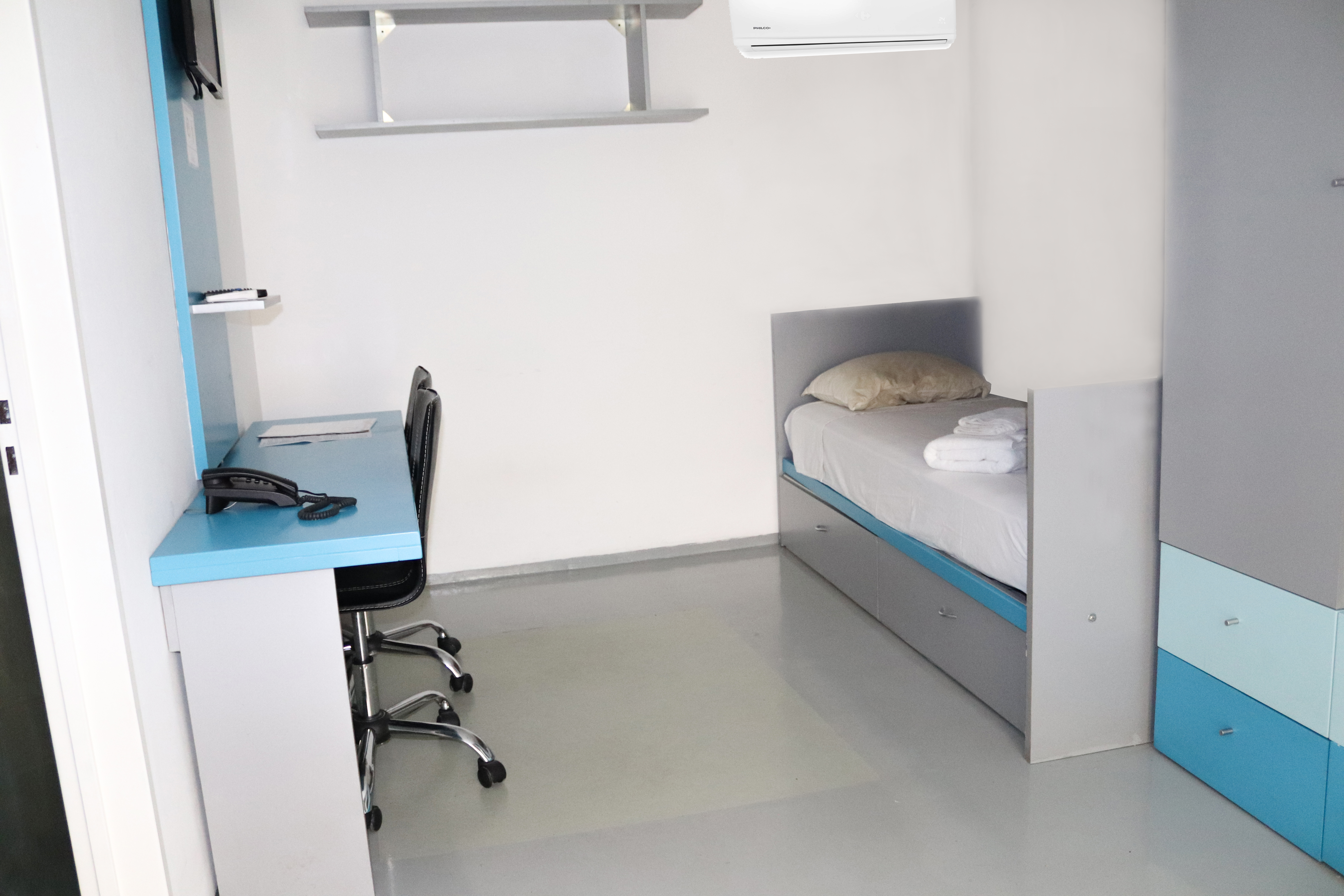 Simples y dobles con baño privado, aire acondicionado frío calor, TV LCD, WIFI, caja de seguridad, secado de pelo, escritorio, amplios placards, servicio de limpieza
